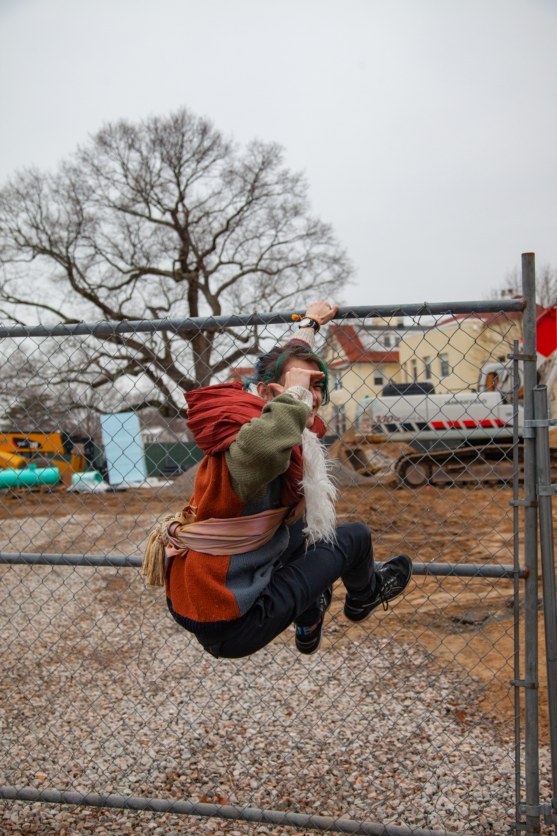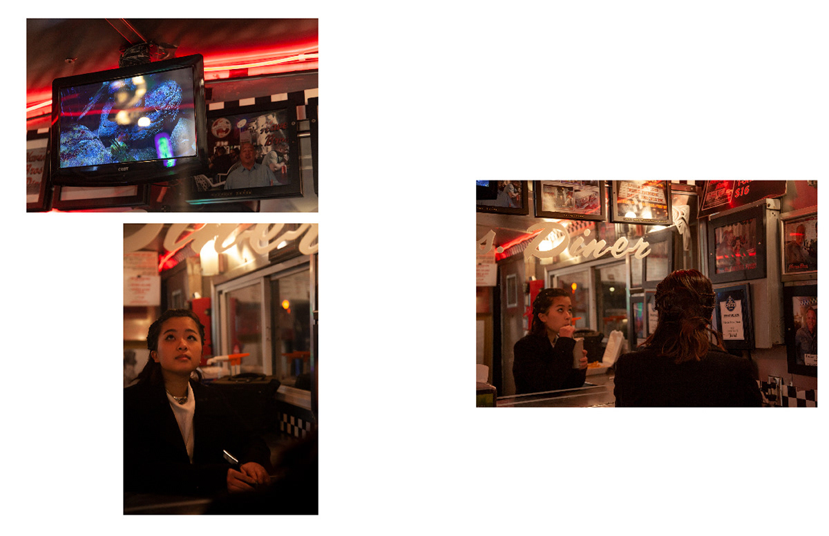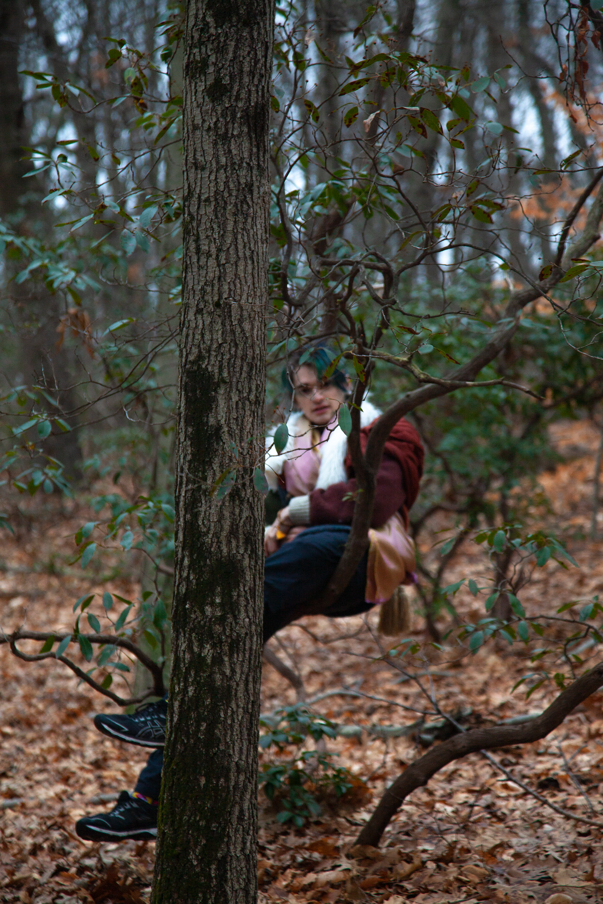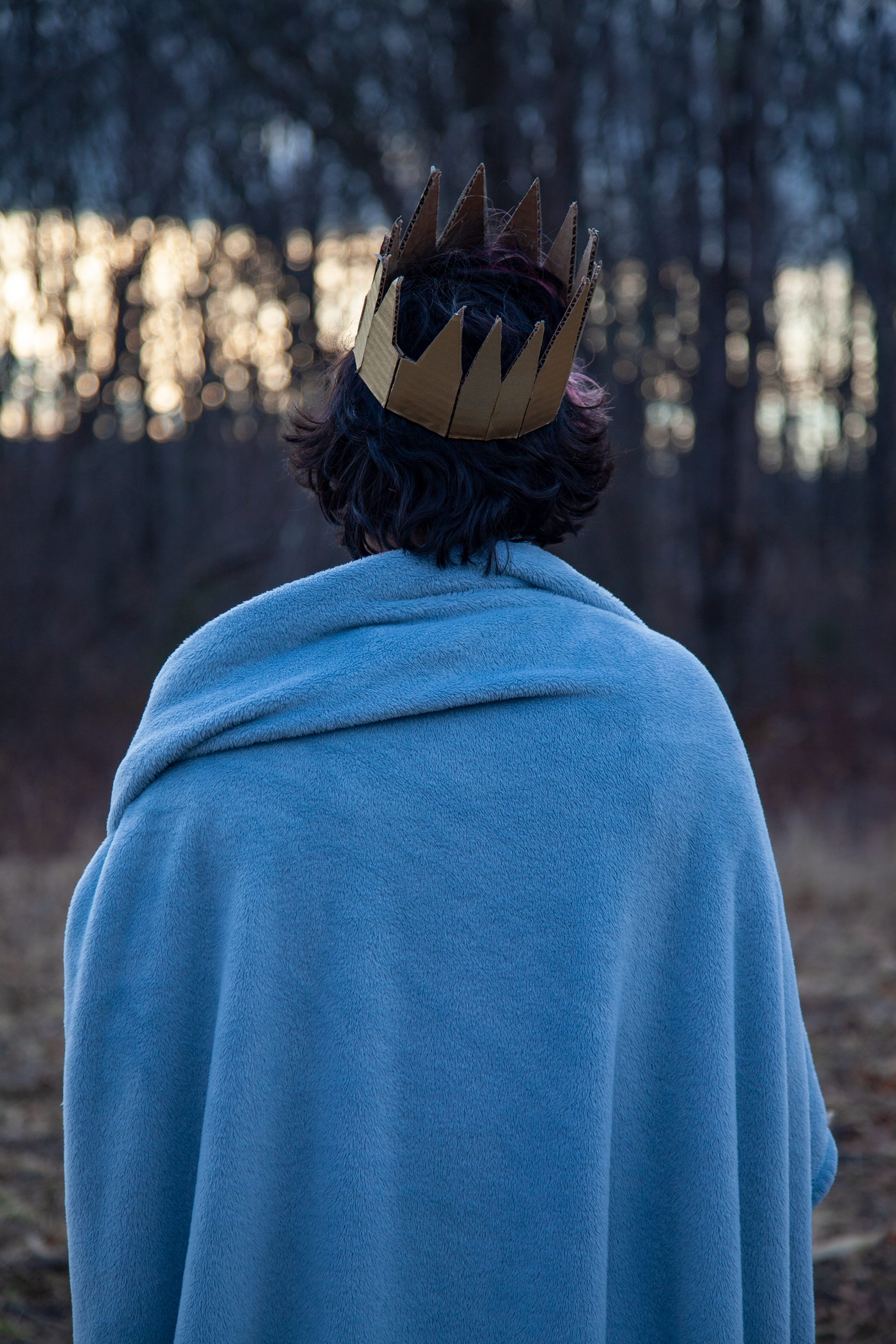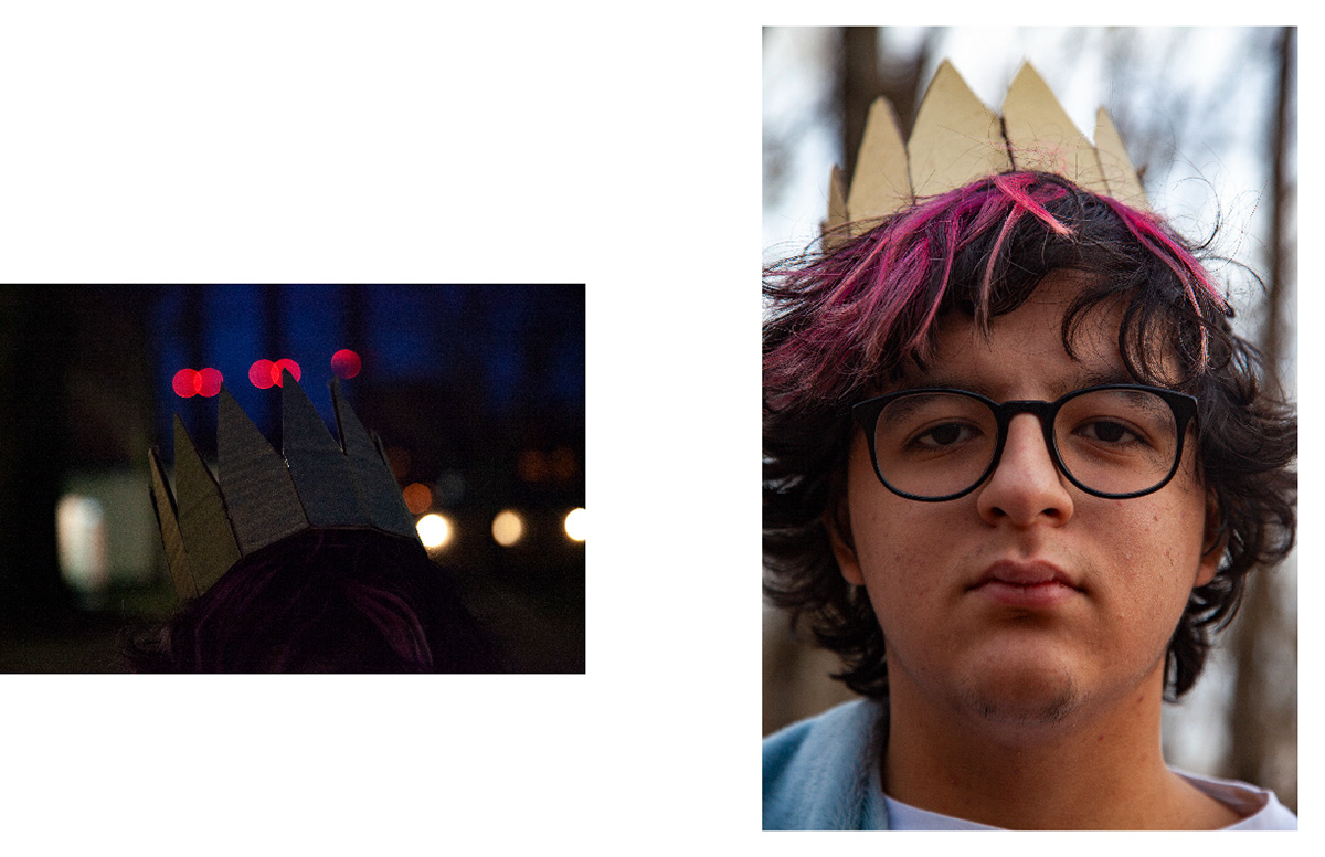 A curated collection of narrative portrait photography: three imaginary "characters" exploring diverse versions of the real world (future, storybook, fantasy) This is a digital scan of a hand-stitched photobook