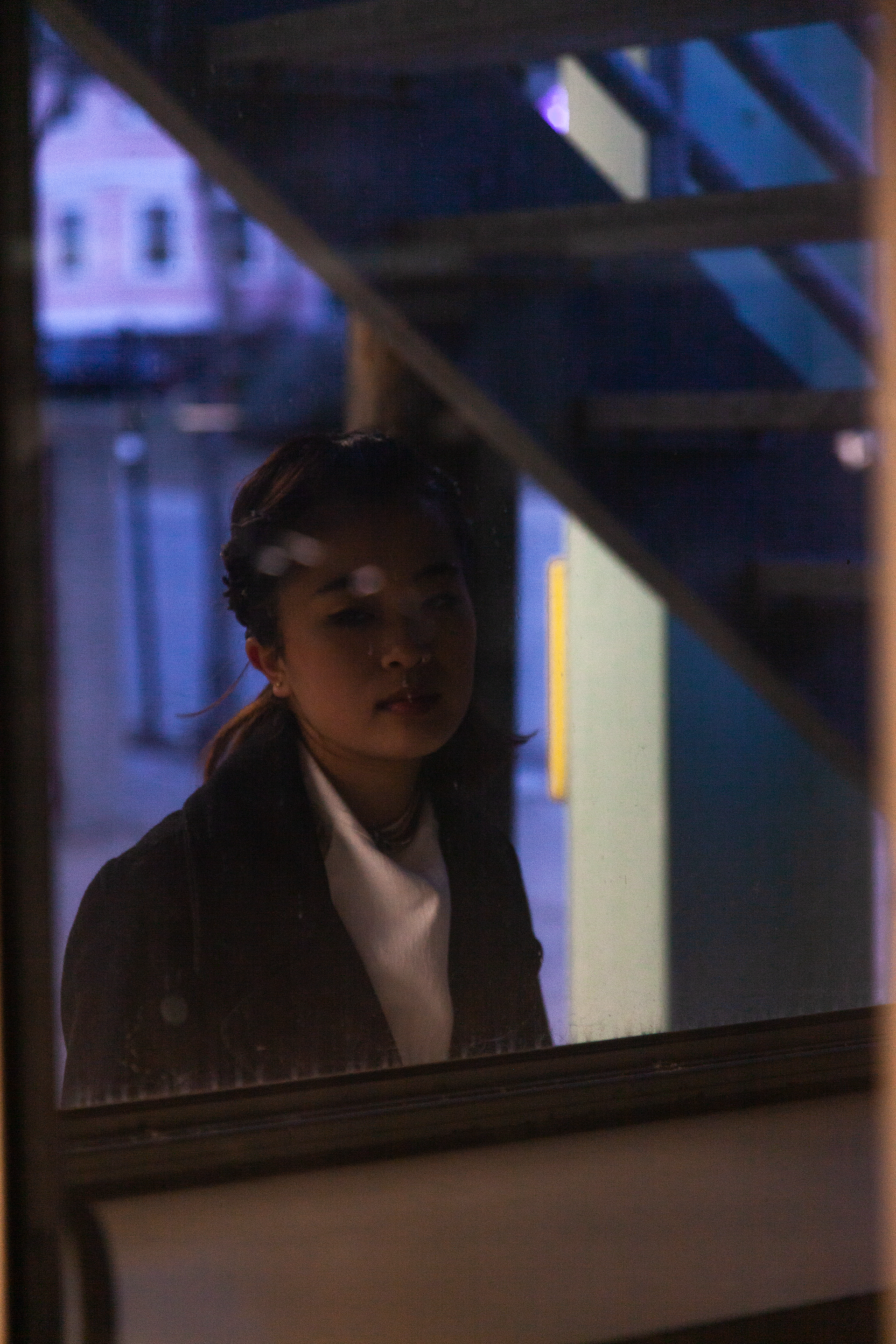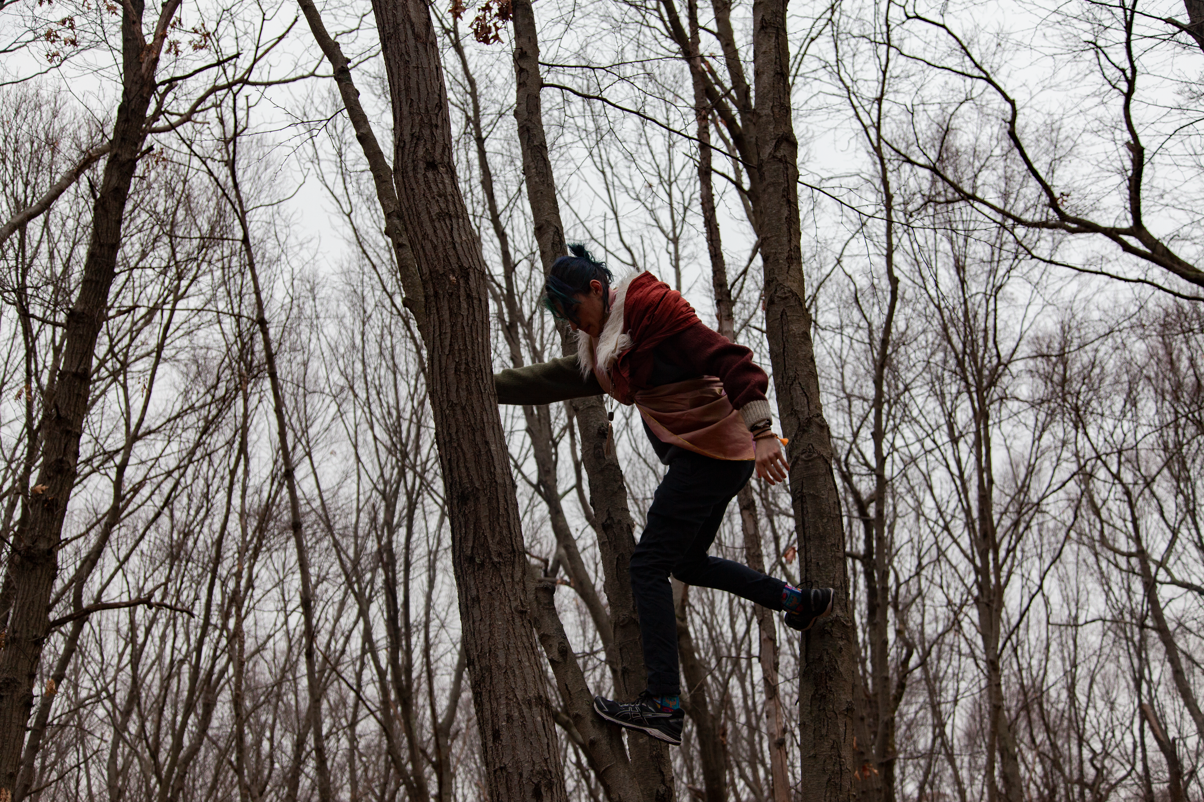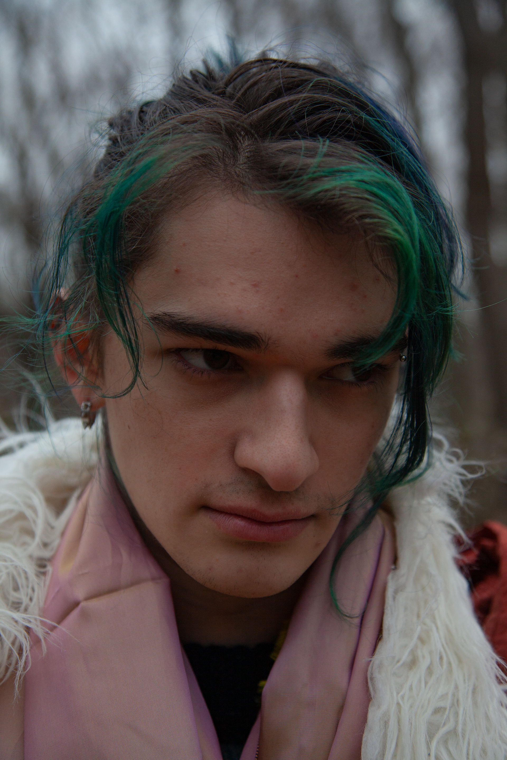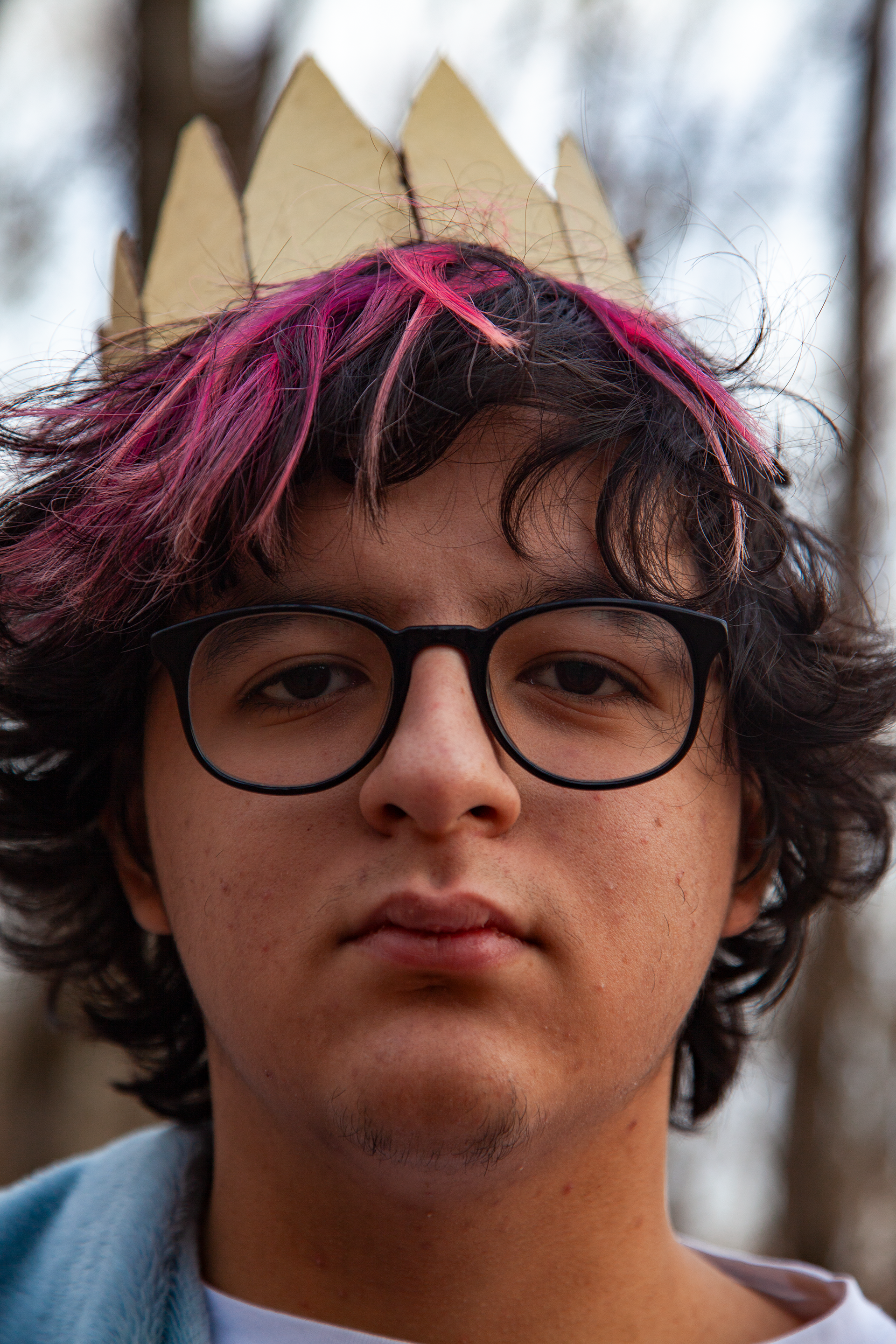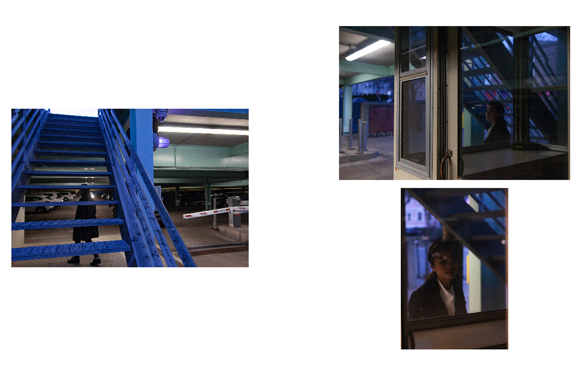 A curated collection of narrative portrait photography: three imaginary "characters" exploring diverse versions of the real world (future, storybook, fantasy) This is a digital scan of a hand-stitched photobook